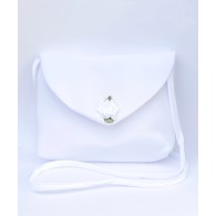 Torebka komunijna, z zielonym kwiatem i trójkątną klapką.