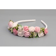 Lekka i wygodna opaska do włosów, ręcznie ozdobiona lśniącymi  akcentami oraz pięknymi kwiatami zachwyci przy wielu okazjach. Idealnie pasuje na Biały Tydzień.