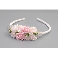 Lekka i wygodna opaska do włosów, ręcznie ozdobiona lśniącymi  akcentami oraz pięknymi kwiatami zachwyci przy wielu okazjach. Idealnie pasuje na Biały Tydzień.