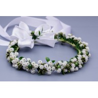 Unikalny wygląd wianka , starannie dopasowane kwiaty i dodatki, dopełnią odświętny strój komunijny.